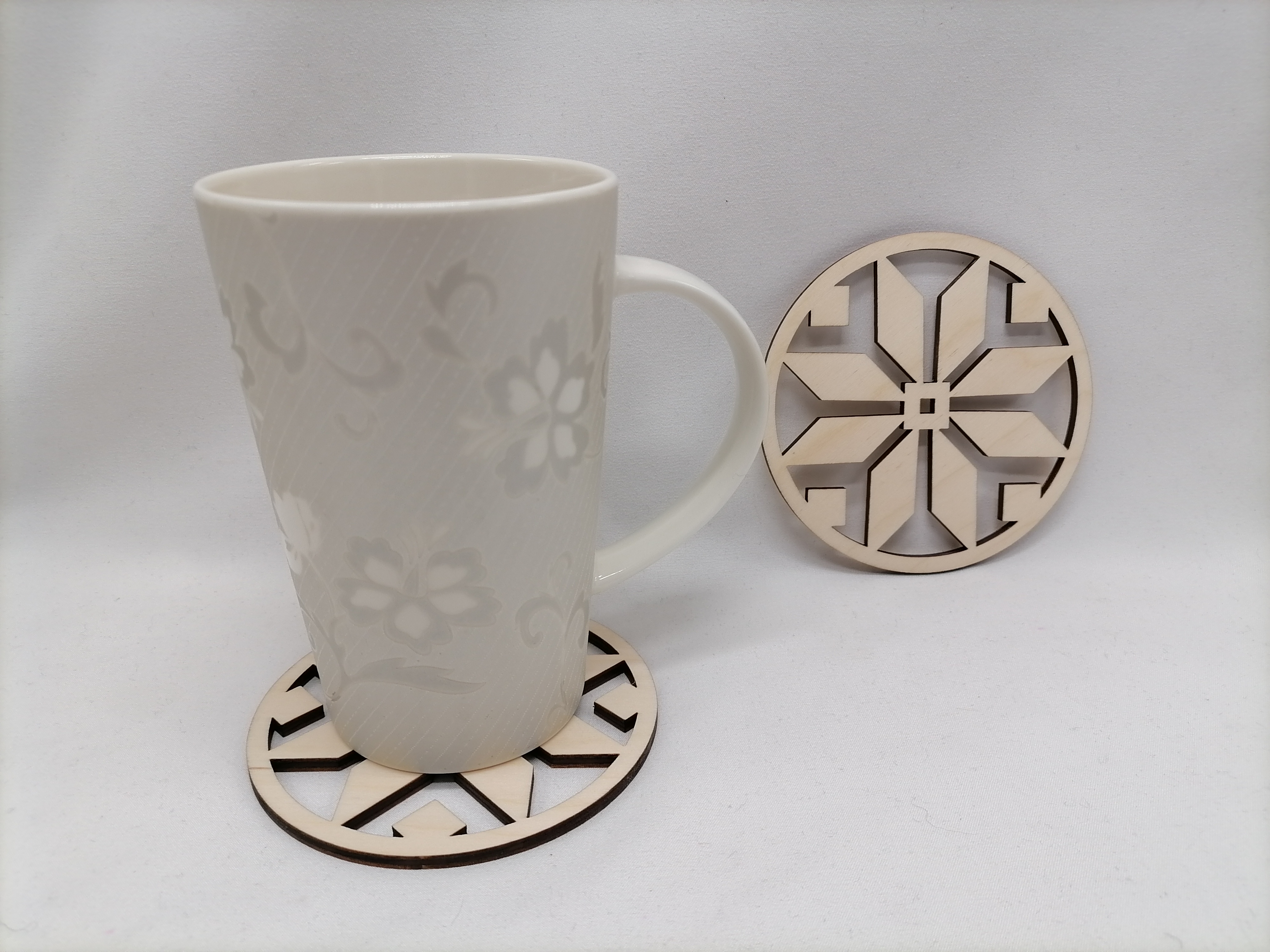 Ponúkame vám vyriezané podšálky z 4mm hrubej preglejky. Podšálka je lakovaná z obidvoch strán. Cena je za 1 ks.