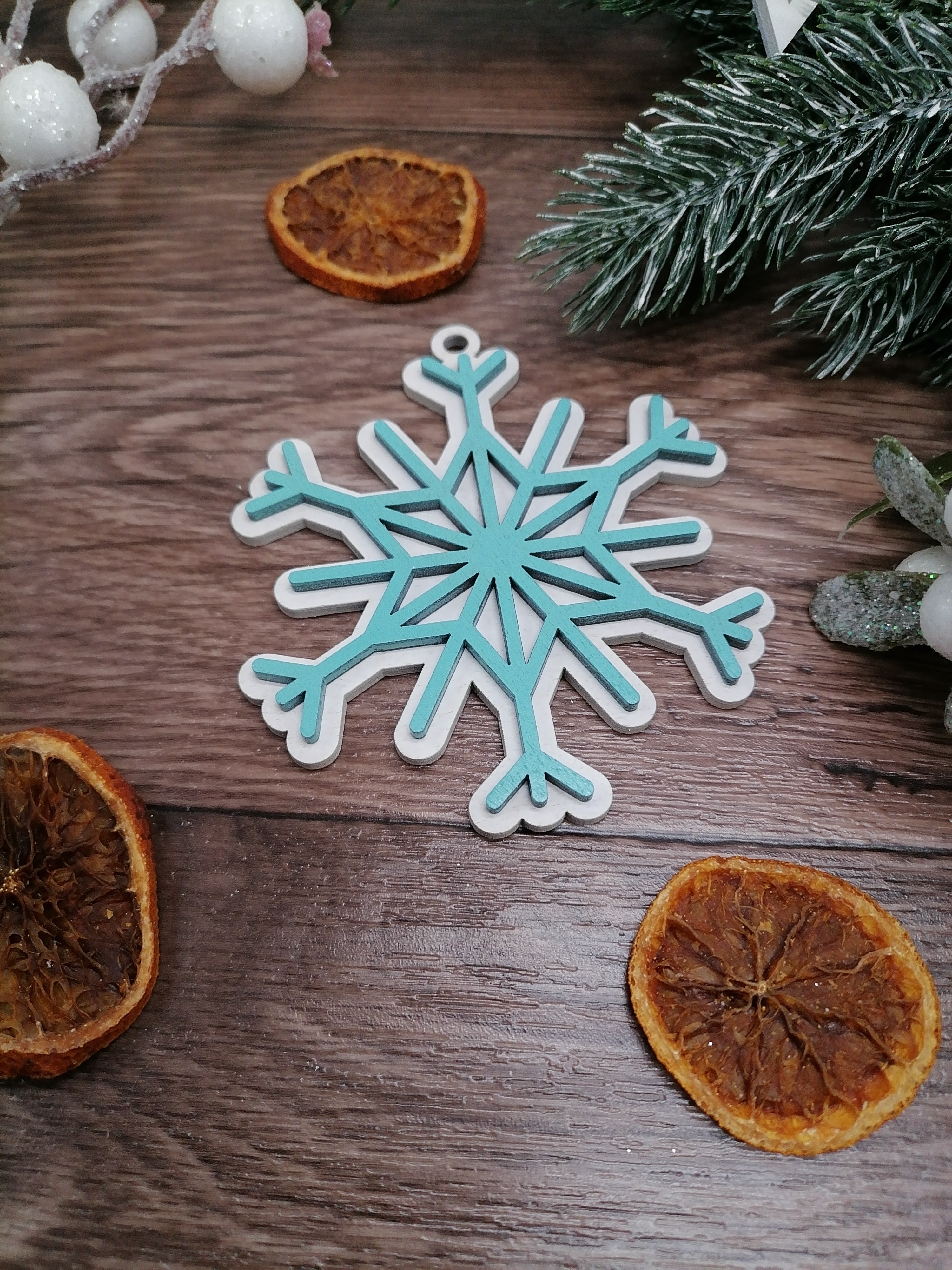 Vianočná farebná dekorácia z dreva na vianočný stromček v podobe vianočnej vločky :) Vločka biela s vločkou zelenou ..Vhodné aj do venčekov ,alebo na dotvorenie v rôznych iných dekorácií.